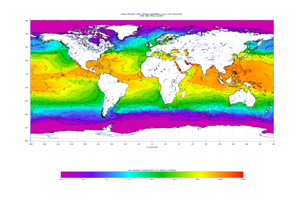 Tropical cyclones get their energy from warm sea surface temperatures. Research has shown that sea surface temperatures need to be at least 26 degrees Celsius (or 79 degrees Fahrenheit) in order to support the formation of tropical cyclones. The air spiraling in towards the center of a tropical cyclone is warmed up and given moisture by the warm sea surface temperatures. This warm, moist air is then used to create strong storms near the center of the hurricane. If a mature tropical cyclone moves into a region with cooler sea surface temperatures, it will likely cause the storm to weaken in intensity.