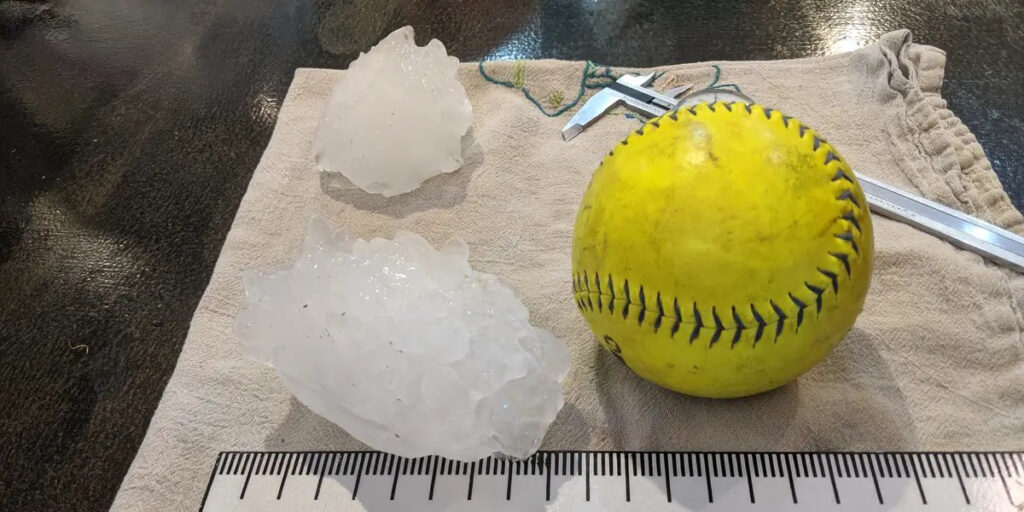 Hail larger than one inch in diameter can cause property damage or injuries to people and livestock. Even though smaller hail can still cause damage such as crop damage, Severe Thunderstorm Warnings are usually issued when hail is expected to be one inch or larger. Hail forms where liquid water and ice are mixing near the freezing level in thunderstorms. The stronger the updraft, the heavier the hail can get before it falls out of the cloud. Therefore, stronger thunderstorms with stronger updrafts produce larger hail. The largest hailstones in the world occur in the United States and South America, and they have diameters of about 8 inches.